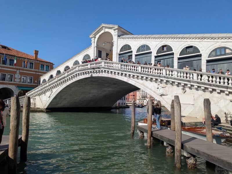 Die Rialtobrücke ist die berühmteste und bekannteste Brücke von Venedig . Nach den Plänen des Architekten Antonio da Ponte im den Jahren von 1588 - 1591 erbaut, ist die 48 Meter lange und 22 Meter breite Brücke ein echter Touristen-Magnet. Hat man das Glück einen Platz am steinernen Geländer zu ergattern, kann man das typische Postkartenbild mit Blick auf den Canale Grande aufnehmen.