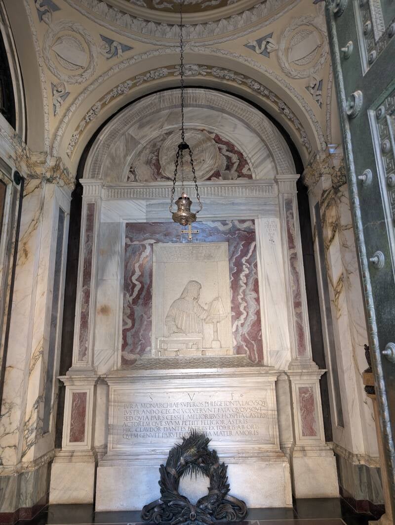 Im Inneren steht ein Sarkophag mit den Gebeinen des Dichters.