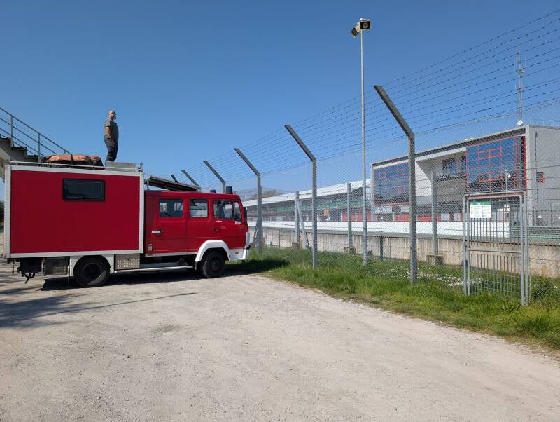 Wir übernachten auf dem hinteren Parkplatz und können am Morgen direkt beim Training dabei sein.