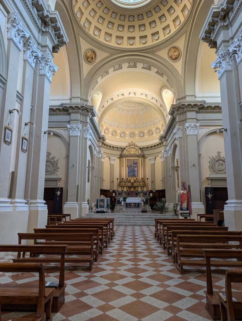Natürlich sind wir auch den kurzen Fußweg zur Kirche gegangen, die im historischen Zentrum von Verucchio liegt. Die chiesa del colegata martino e san francesco wurde 1863 errichtet und beherbergt wertvolle Stücke wie das Kruzifix des "Maestro di Verucchio" sowie das Kruzifix von Nicola del Paradiso.