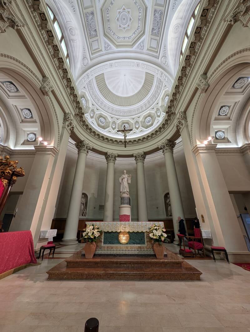 Im Inneren befindet sich unter dem Hauptaltar eine Urne mit den Gebeinen des Heiligen Marinus, und ein silberner Schrein mit dem heiligen Schädel wir rechts des Altars bewahrt.